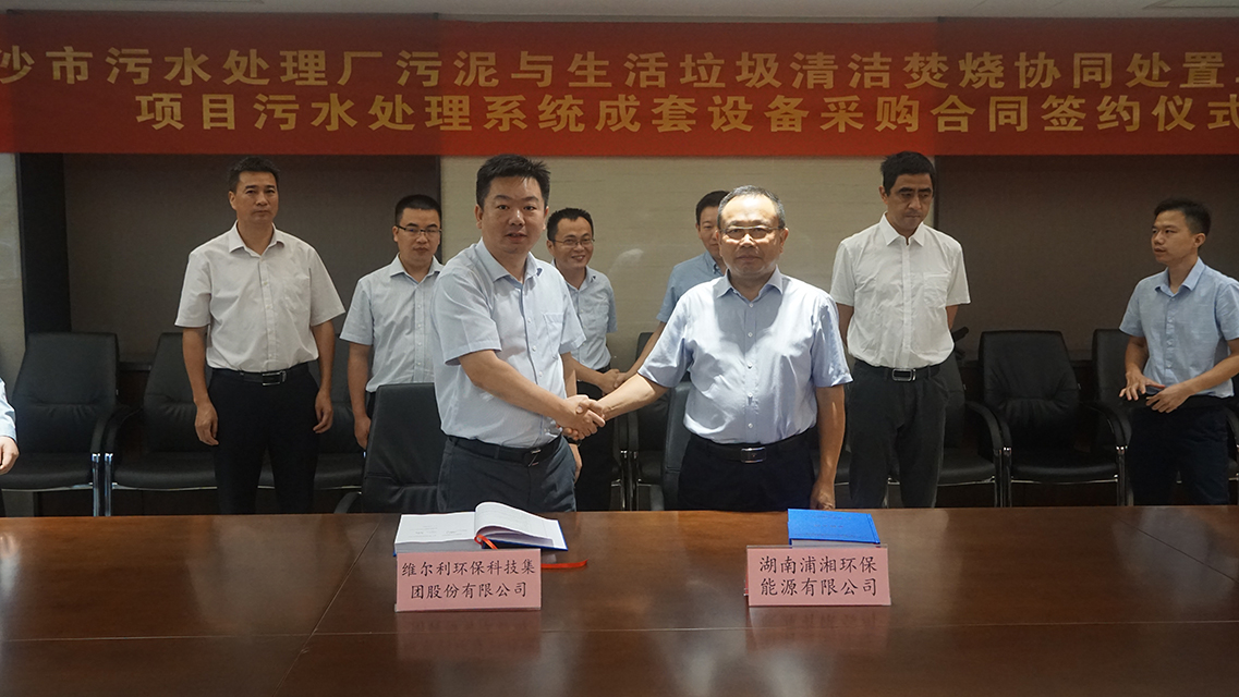 2020年7月8日上午,湖南浦湘環保能源有限公司(以下簡稱“浦湘環保”)及維爾利環保科技集團股份有限公司(以下簡稱“維爾利集團”)就“長沙市污水處理廠污泥與生活垃圾清潔焚燒協同處置二期工程項目污水處理系統成套設備采購合同”舉行了隆重的簽約儀式。