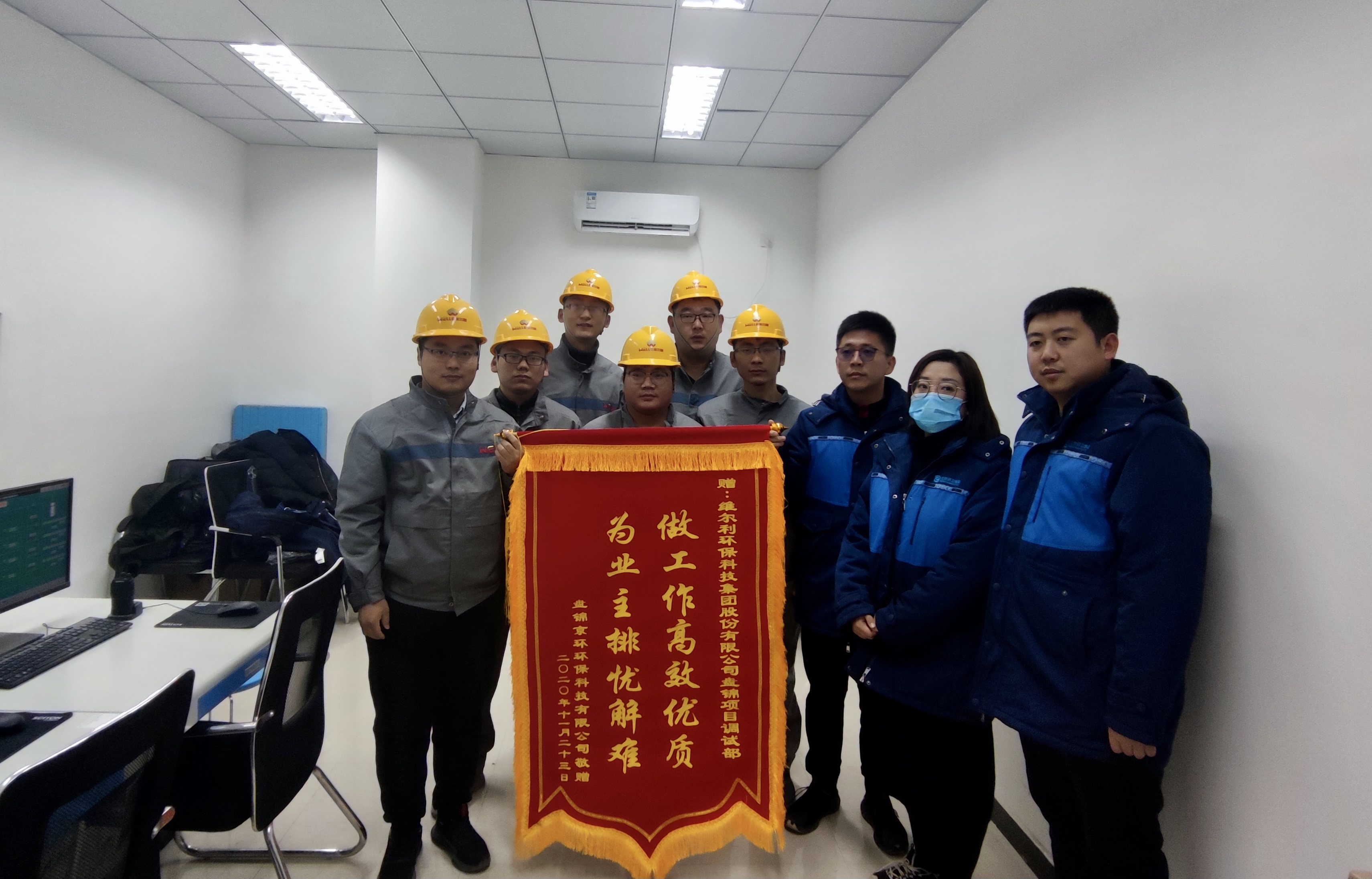 目前,本項目順利進入試運行階段,不僅減輕了現場滲濾液積存液處理的壓力,更為盤錦市創建市級“污水零直排區”提供了有效的技術支撐。為此,業主盤錦京環公司特意給維爾利盤錦項目團隊制作了一面錦旗,以感謝維爾利團隊的辛勤付出。在今后的項目上,維爾利團隊將繼續發揮過硬的技術,為業主提供更優的服務。