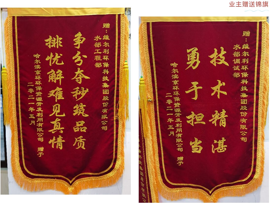 “哈爾濱京環(huán)環(huán)保資源開發(fā)利用有限公司廢水處理站技術(shù)改造項(xiàng)目”處理規(guī)模為600t/d,主體工藝路線為“除渣、絮凝沉淀+厭氧+膜生物反應(yīng)器(MBR)”,維爾利集團(tuán)負(fù)責(zé)外置式MBR系統(tǒng)改造設(shè)計。在天氣惡劣、土建延遲交安的情況下,集團(tuán)項(xiàng)目團(tuán)隊勇?lián)厝危茖W(xué)組織、精心部署,順利完工,業(yè)主方特贈錦旗表示肯定。